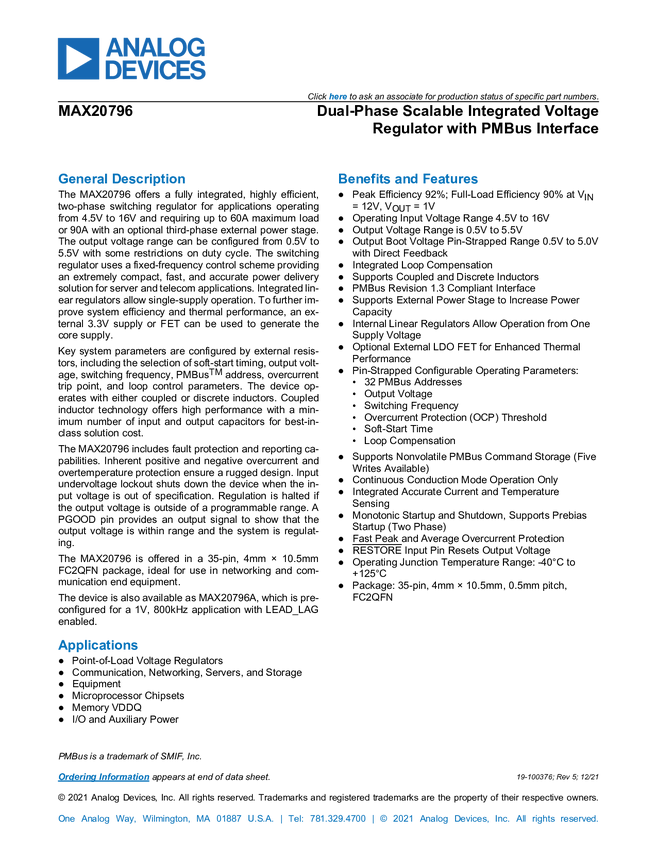 Dual-Phase Scalable Integrated Voltage Regulator with PMBus Interface