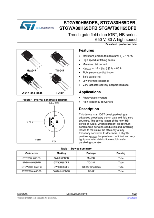 Trans IGBT Chip N-CH 650V 120A 3-Pin Max247 Tube