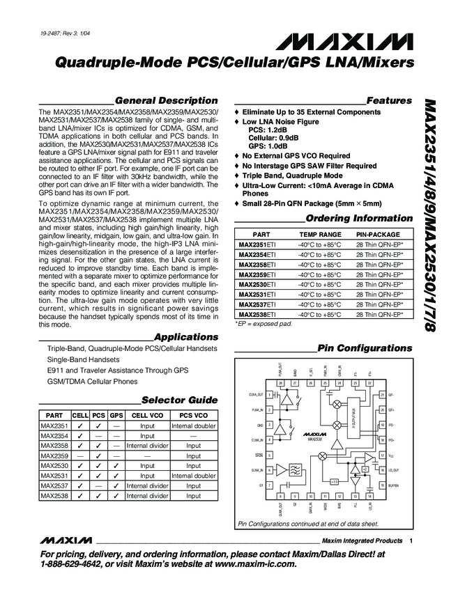 Quadruple-Mode PCS/Cellular/GPS LNA/Mixers