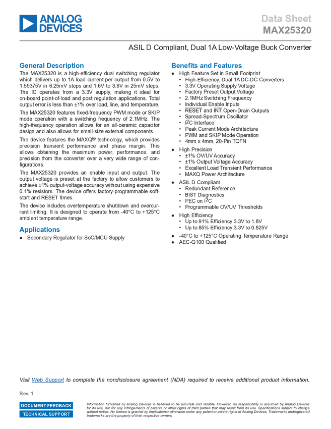 ASIL-D Compliant Dual 1A Low-Voltage Buck Converter