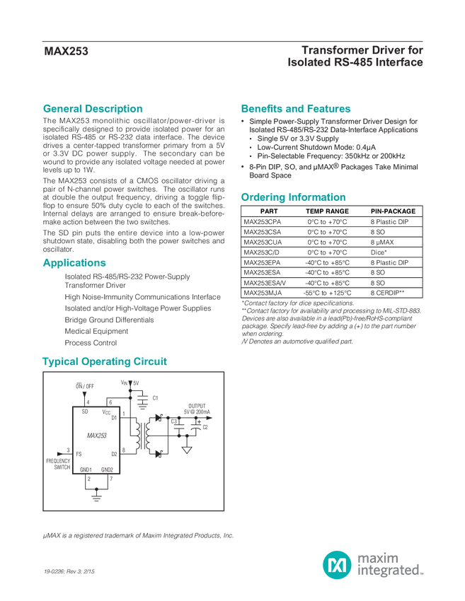 Maxim Integrated MAX253CPA+ PMIC - pomiar energii przewlekany tuba