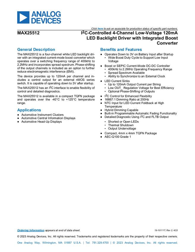IC-Controlled 4-Channel Low-Voltage 120mA LED Backlight Driver with Integrated Boost Converter