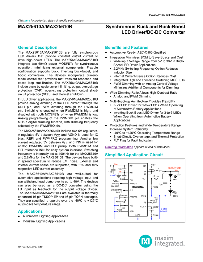 Synchronous Buck and Buck Boost LED Driver / DC-DC Converter