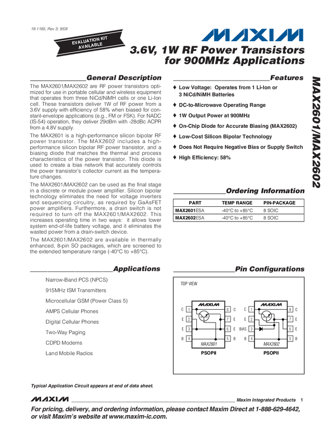 3.6V, 1W RF Power Transistors for 900MHz Applications
