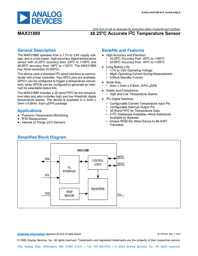 ±0.25°C Accurate 1-Wire Temperature Sensor