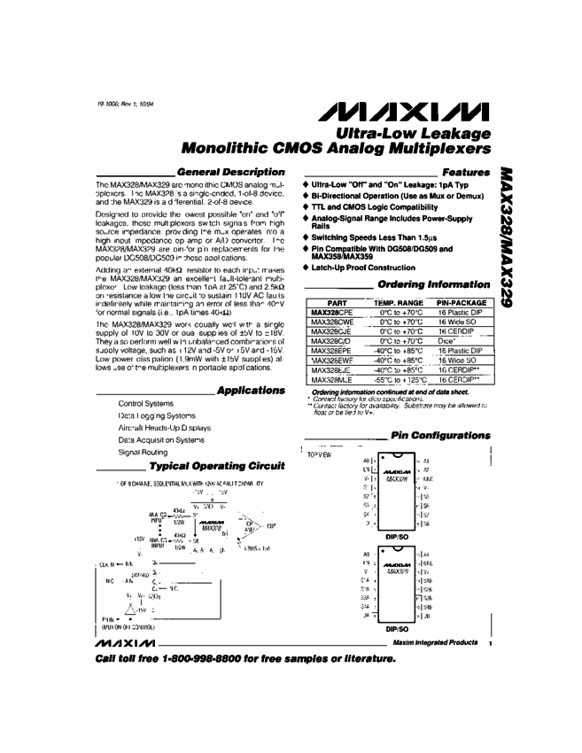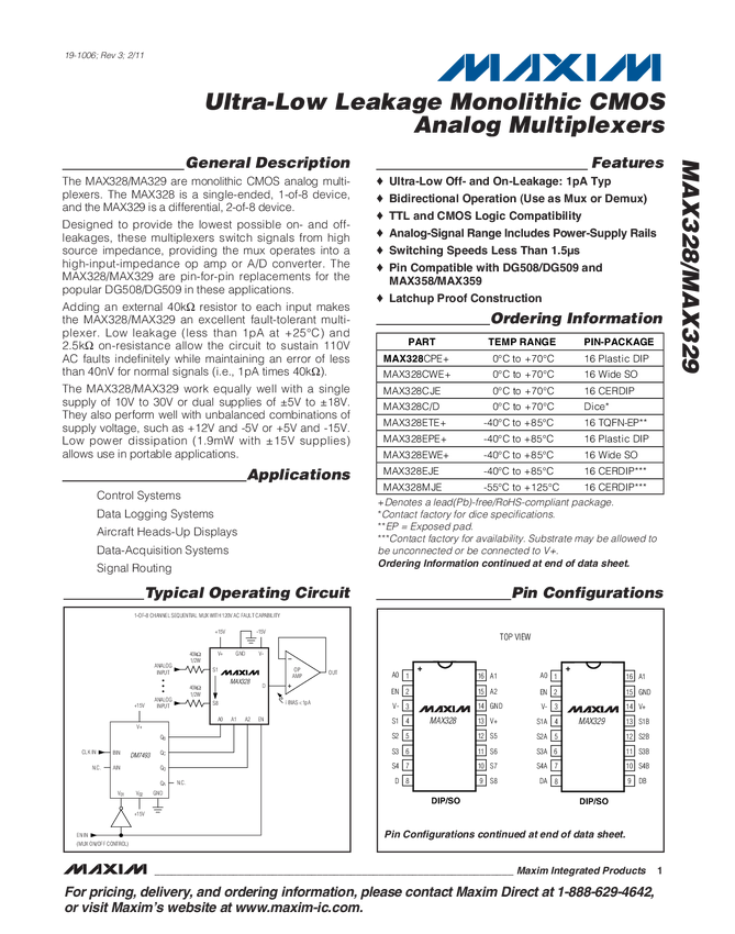 Ultra-Low-Leakage, Single-Ended, Monolithic, CMOS Analog Multiplexer