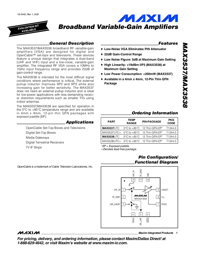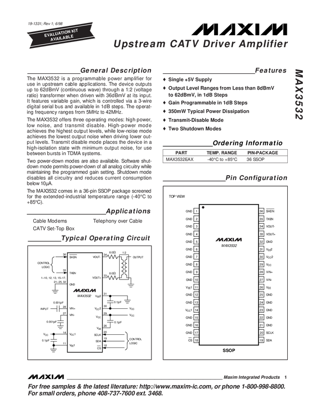 MAX3535E, MXL1535E +3V to +5V, 2500VRMS Isolated RS-485/RS-422 Transceivers with ±15kV ESD Protection