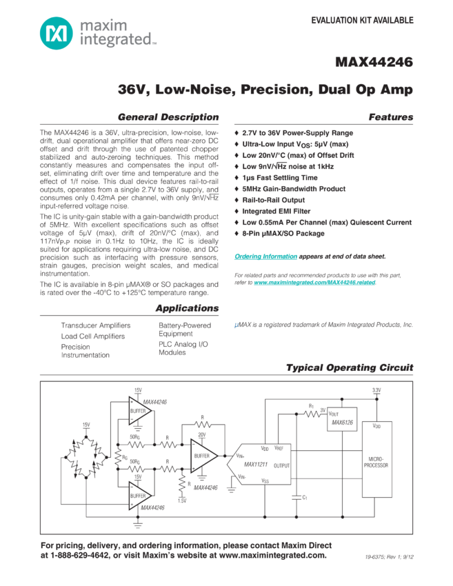 MAX44246 36V, Low-Noise, Precision, Dual Op Amp