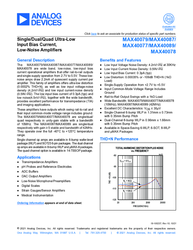 10MHz/42MHz Low-Noise, Low-Bias Op Amps
