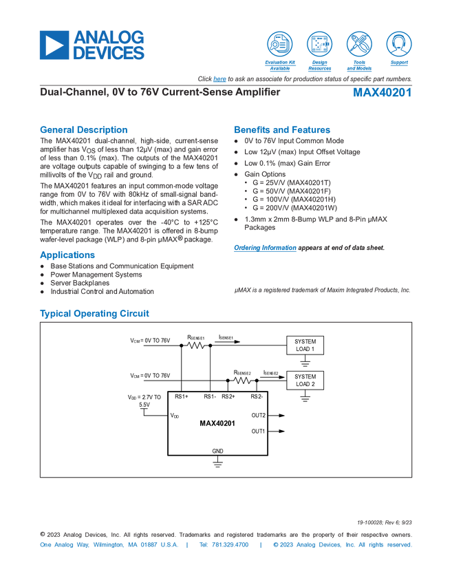 Dual-Channel, 0V to 76V Current-Sense Amplifier