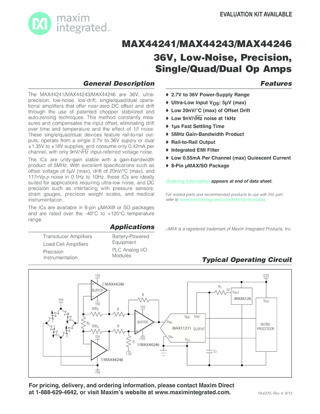 MAX44241, MAX44243, MAX44246 36V, Low-Noise, Precision, Single/Quad/Dual Op Amps