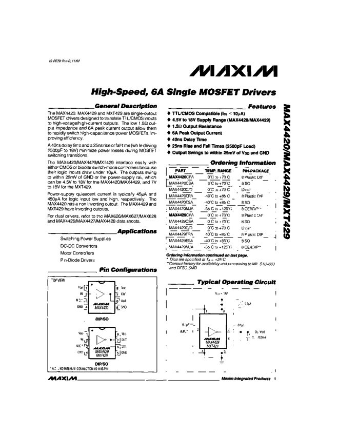 MAX4426, MAX4427, MAX4428 Dual High-Speed, 1.5A MOSFET Drivers