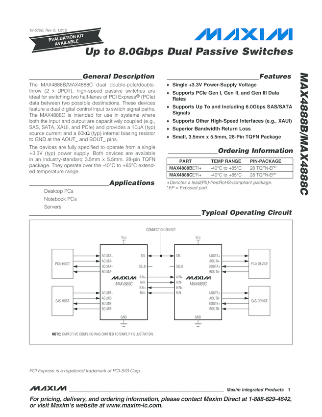 MAX4889A 5.0 Gbps PCIe Passive Switch