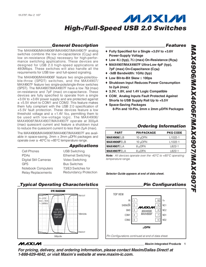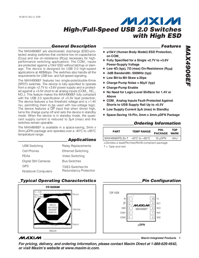 High-/Full-Speed USB 2.0 Switches with High ESD