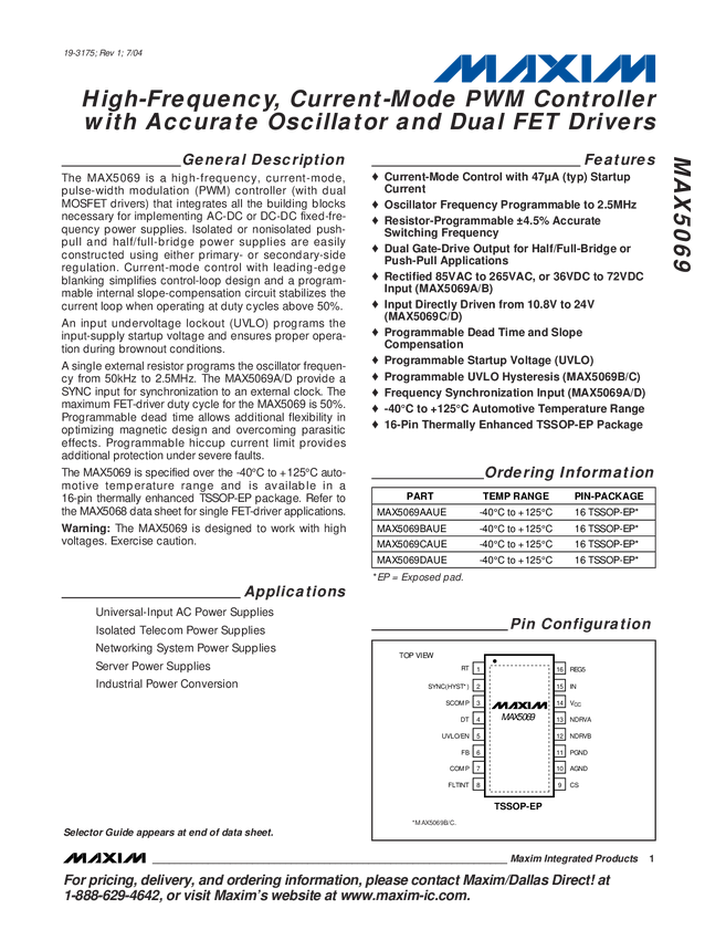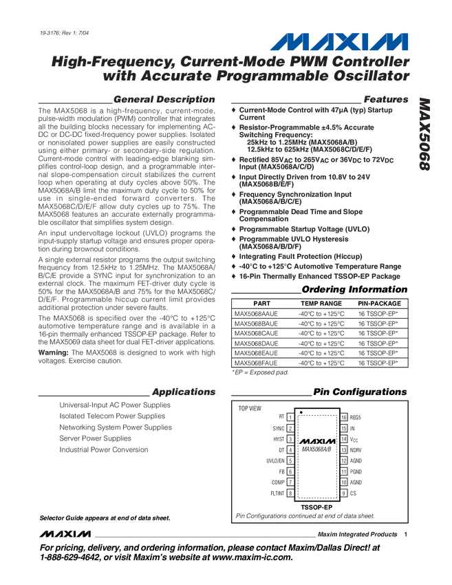 High-Frequency, Current-Mode PWM Controller with Accurate Programmable Oscillator