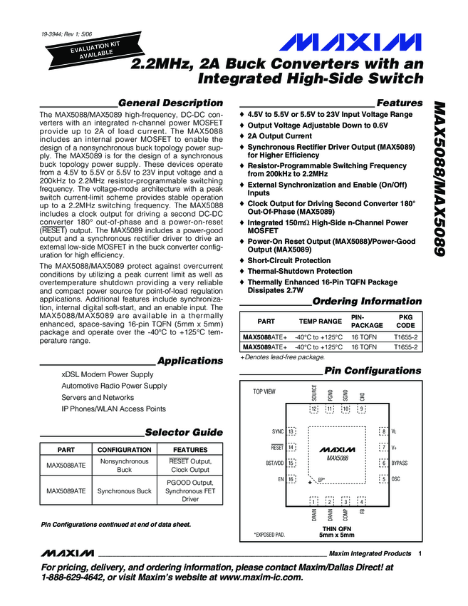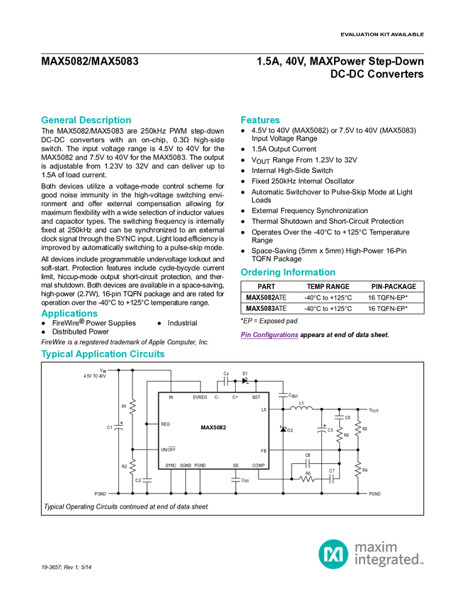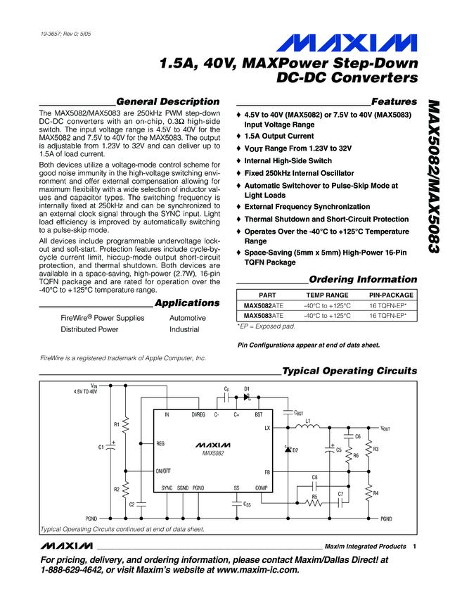 MAX5082, MAX5083 1.5A, 40V, MAXPower Step-Down DC-DC Converters