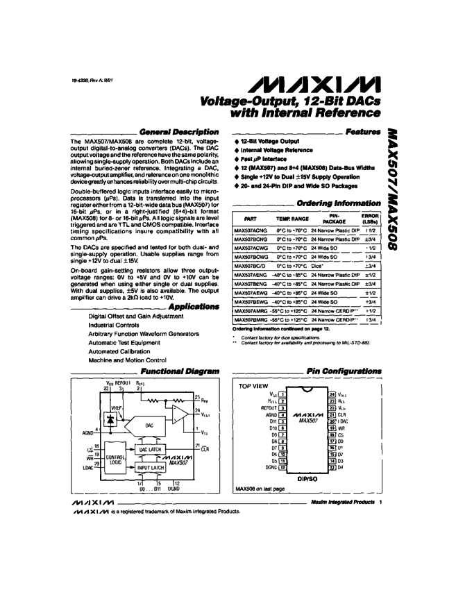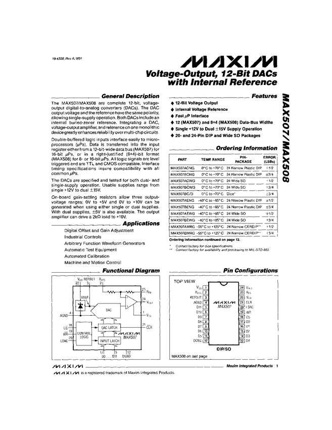 Voltage-Output, 12-Bit DAC with Internal Reference and 12-Bit Interface