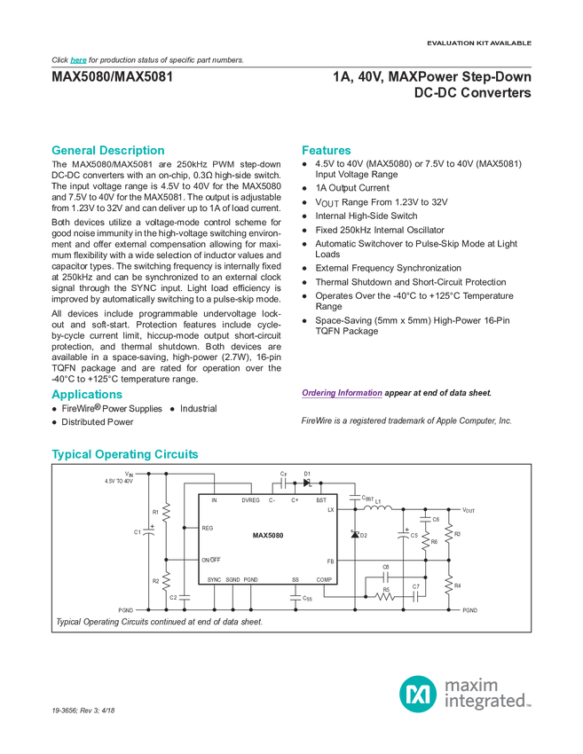 MAX5081 1A, 40V MAXPower Step-Down DC-DC Converter