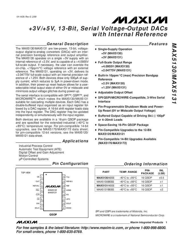 MAX5134, MAX5135, MAX5136, MAX5137 Pin-/Software-Compatible, 16-/12-Bit, Voltage-Output DACs