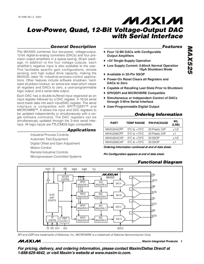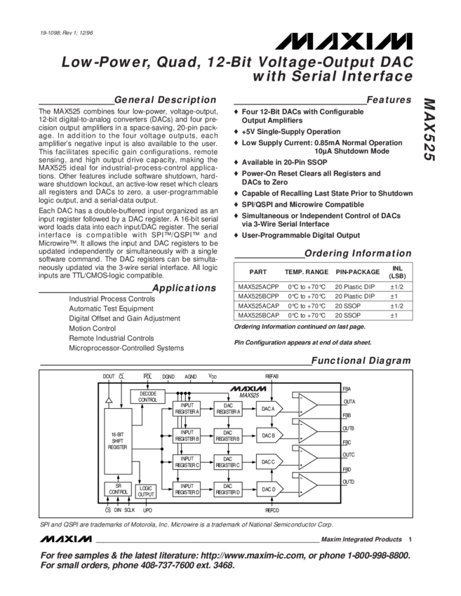 Low-Power, Quad, 12-Bit Voltage-Output DAC with Serial Interface
