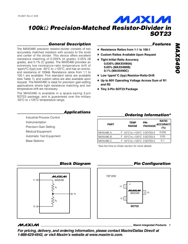 100kΩ Precision-Matched Resistor-Divider in SOT23