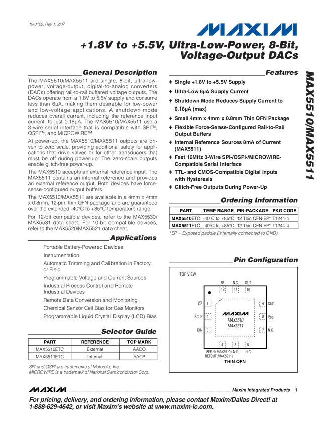 +1.8V to +5.5V, Ultra-Low-Power, 8-Bit, Voltage-Output DACs