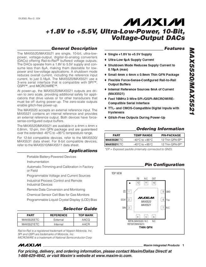 +1.8V to +5.5V, Ultra-Low-Power, 10-Bit, Voltage-Output DACs