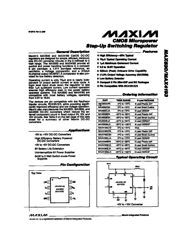 MAX6305, MAX6306, MAX6307, MAX6308, MAX6309, MAX6310, MAX6311, MAX6312, MAX6313 5-Pin, Multiple-Input, Programmable Reset ICs