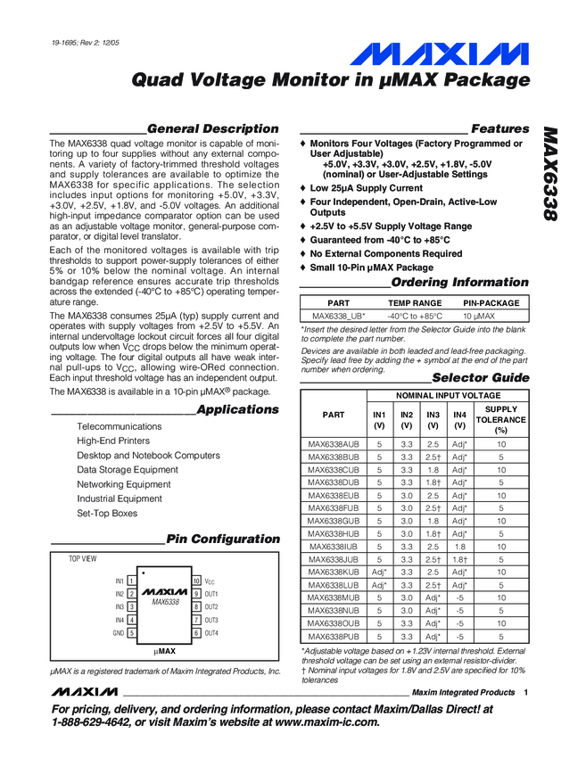 Quad Voltage Monitor with Four Outputs in µMax Package