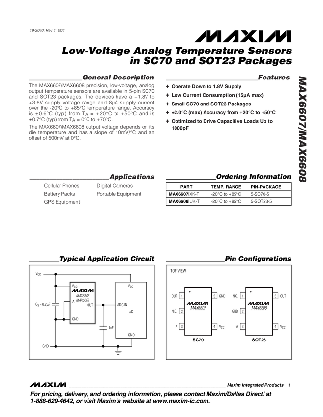 Low-Voltage Analog Temperature Sensors in SC70 and SOT23 Packages