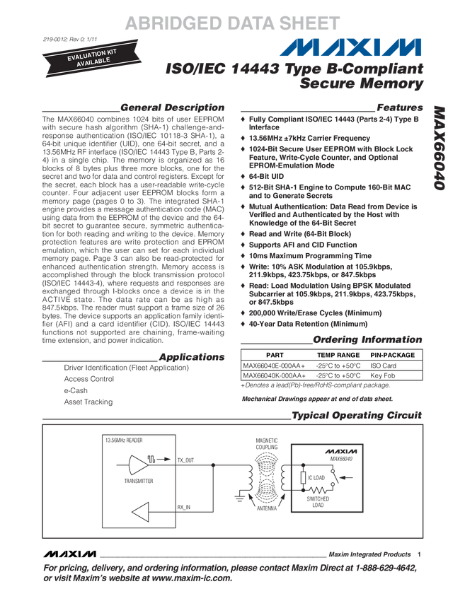 ISO/IEC 14443 Type B-Compliant Secure Memory