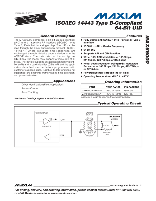 ISO/IEC 14443 Type B-Compliant 64-Bit UID