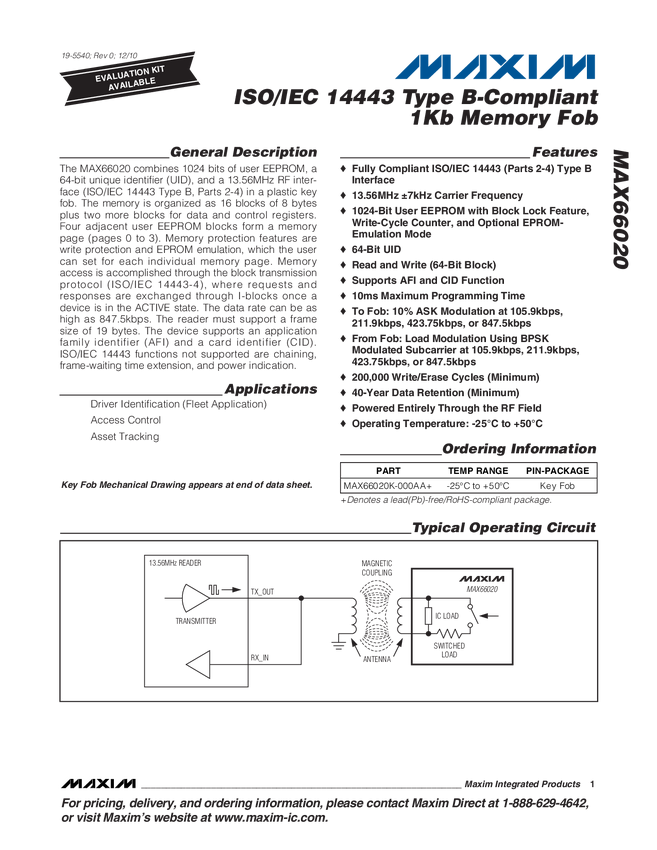ISO/IEC 14443 Type B-Compliant 1Kb Memory Fob