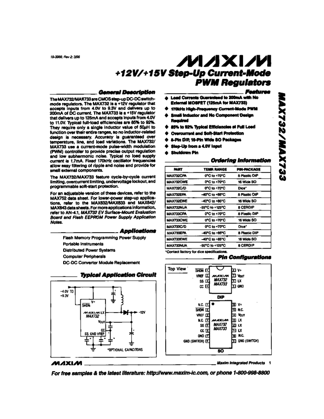 MAX732 12V, Step-Up, Current-Mode, PWM DC-DC Converter