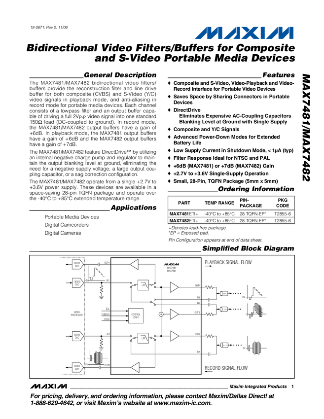 Bidirectional Video Filters/Buffers for Composite and S-Video Portable Media Devices