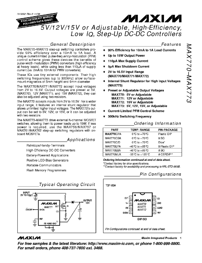 5V/12V/15V or Adjustable, High-Efficiency Low-I, Step-Up DC-DC Controllers