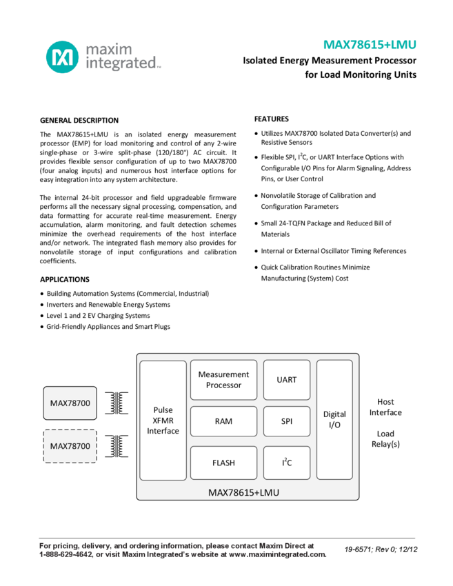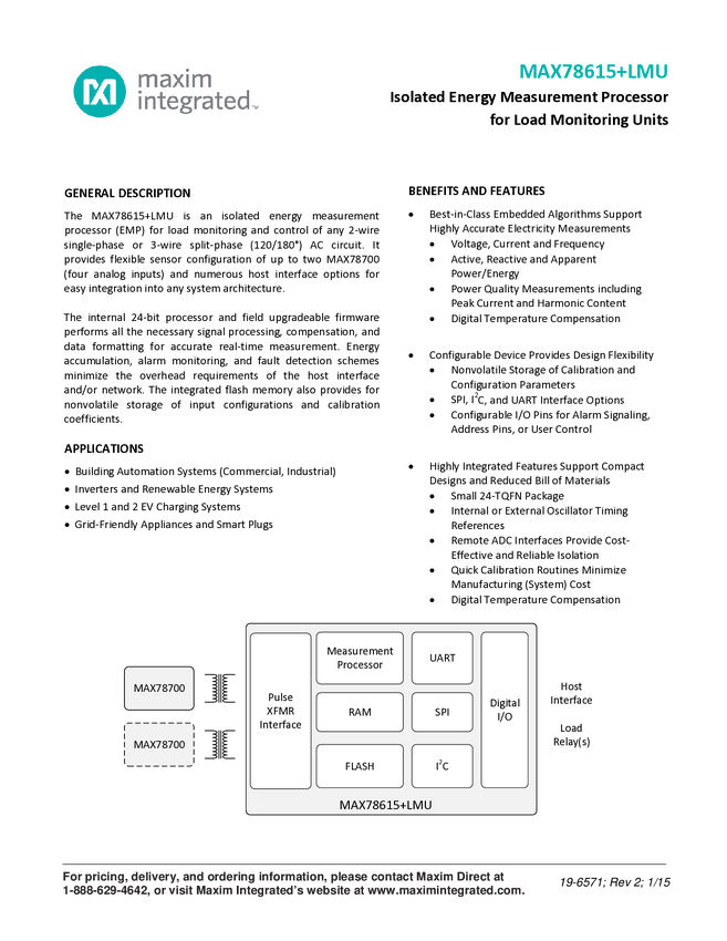 MAX78615+LMU Isolated Energy Measurement Processor for Load Monitoring Units