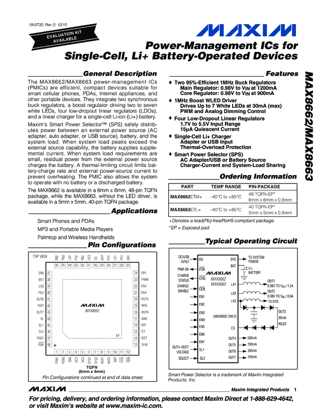 MAX8662, MAX8663 Power-Management ICs for Single-Cell, Li+ Battery-Operated Devices
