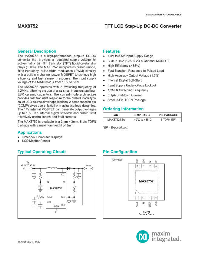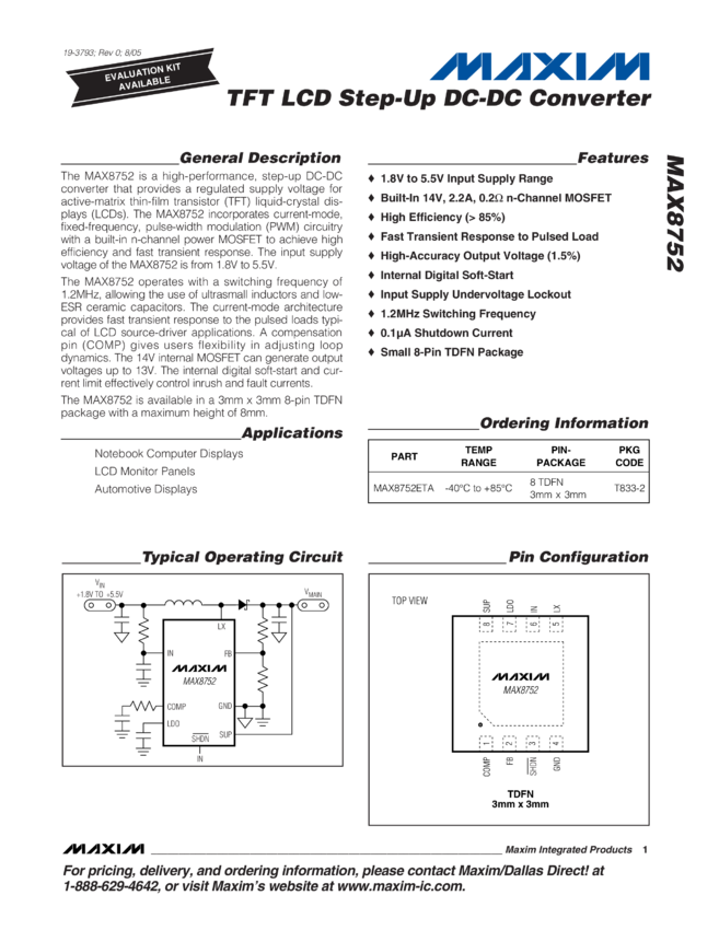 MAX8752 TFT LCD Step-Up DC-DC Converter