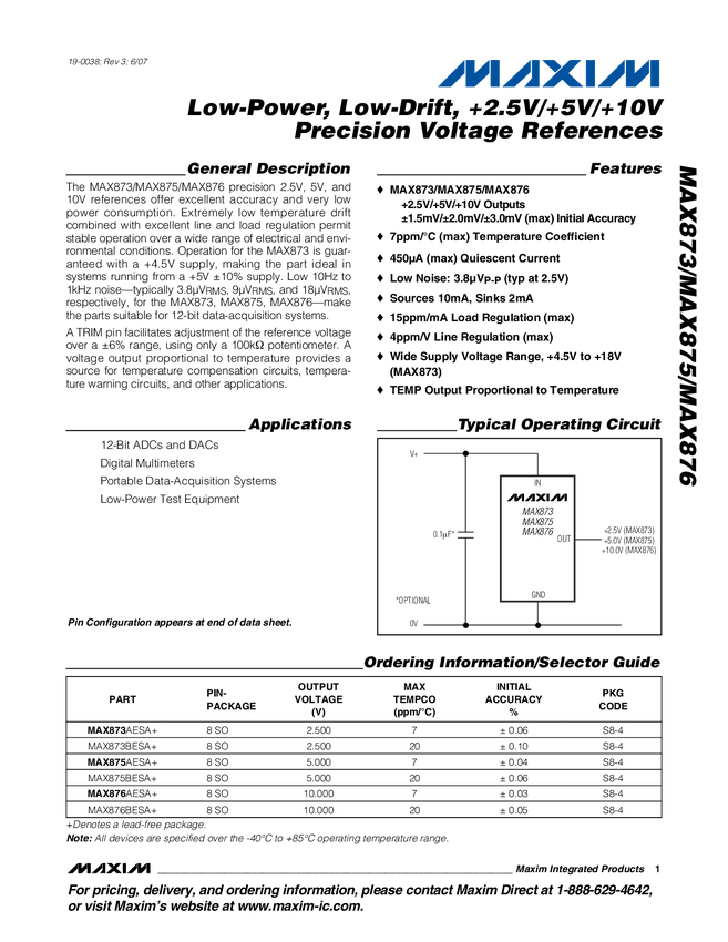 Low-Power, Low-Drift, +2.5V/+5V/+10V Precision Voltage Reference