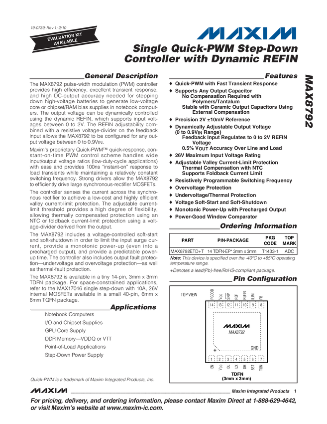Single Quick-PWM Step-Down Controller with Dynamic REFIN