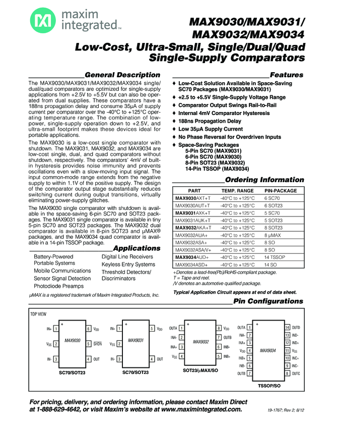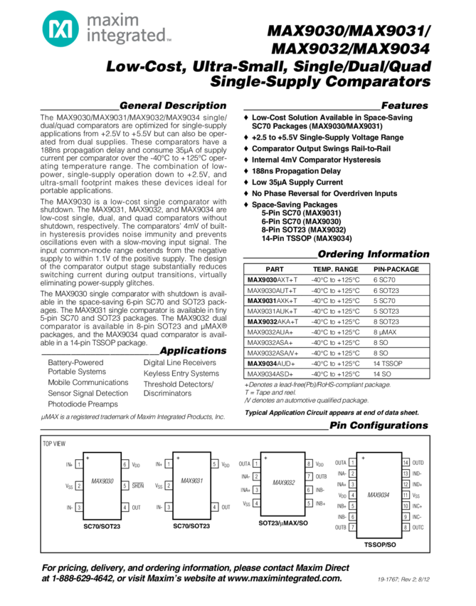 MAX9030, MAX9031, MAX9032, MAX9034 Low-Cost, Ultra-Small, Single/Dual/Quad Single-Supply Comparators
