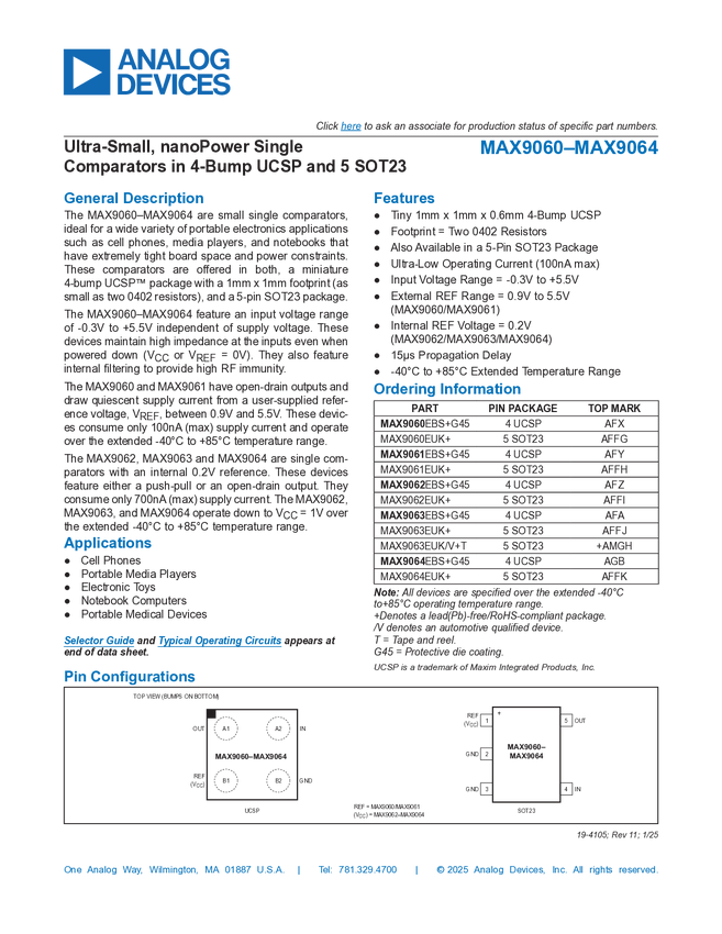 MAX9060, MAX9061, MAX9062, MAX9063, MAX9064 Ultra-Small, Low-Power Single Comparators in 4-Bump UCSP and 5-SOT23
