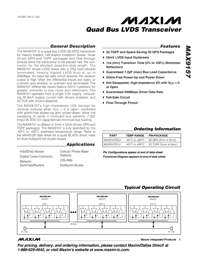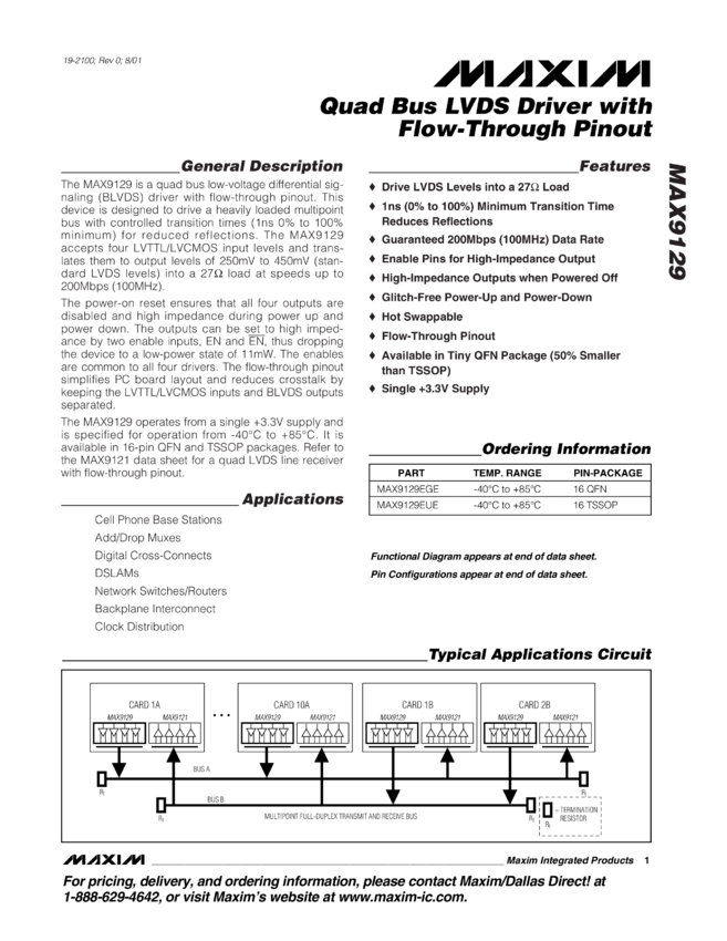 MAX9129 Quad Bus LVDS Driver with Flow-Through Pinout