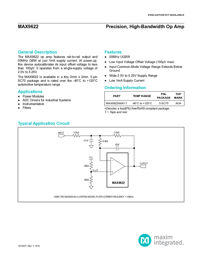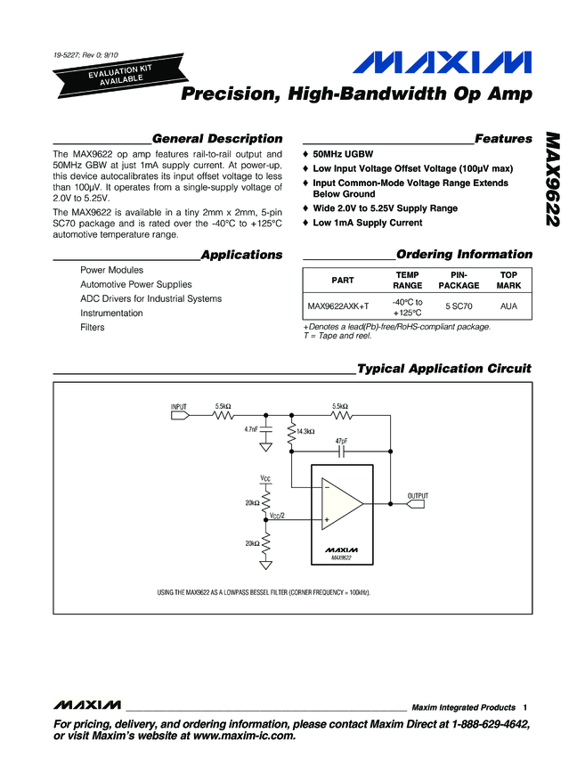 MAX9622 Precision, High-Bandwidth Op Amp