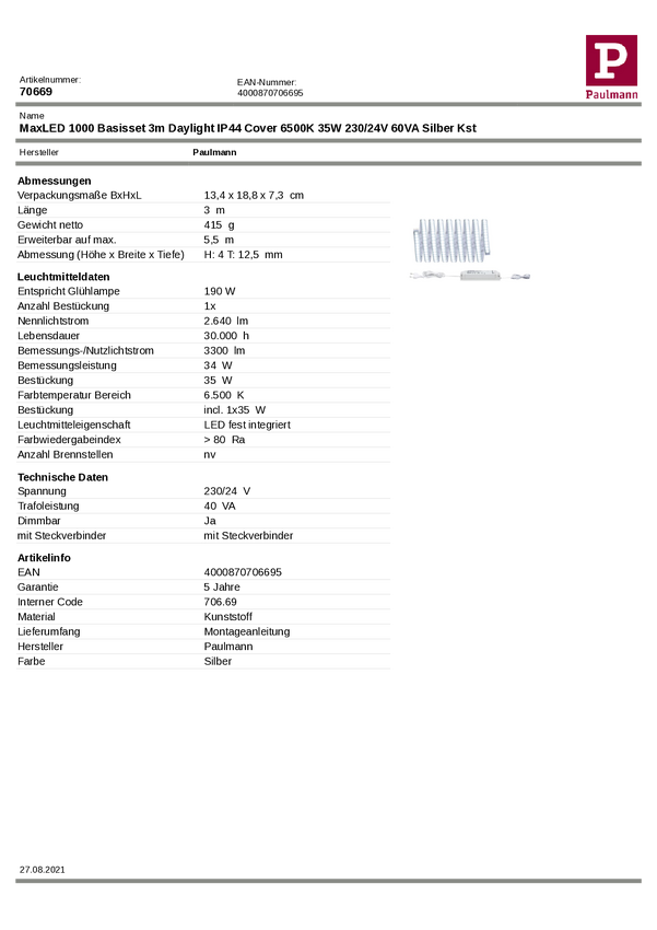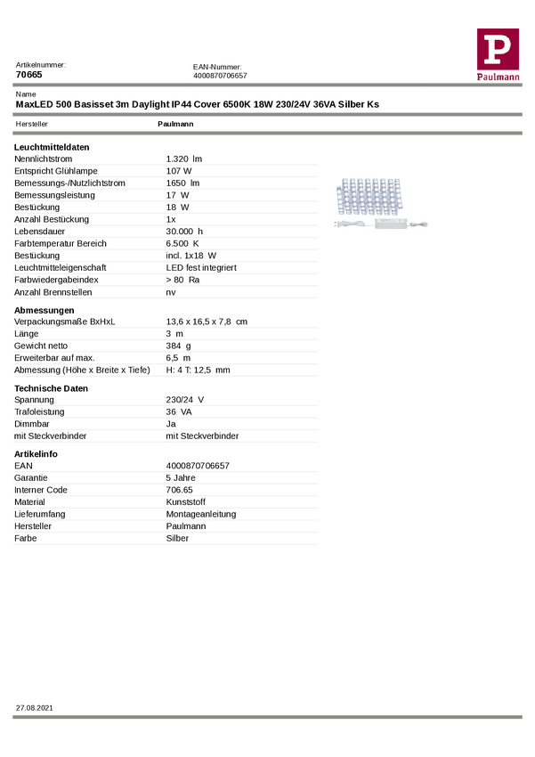 Taśma LED zestaw podstawowy Paulmann MaxLED 500 70665 3 m 24 V