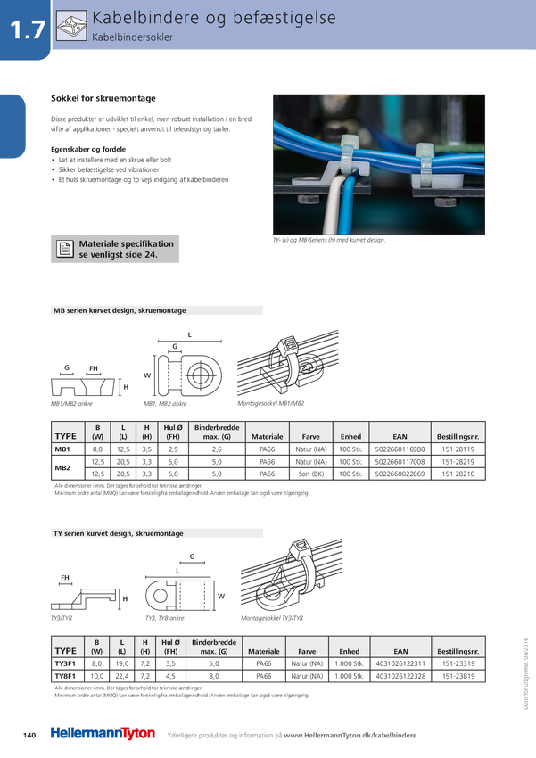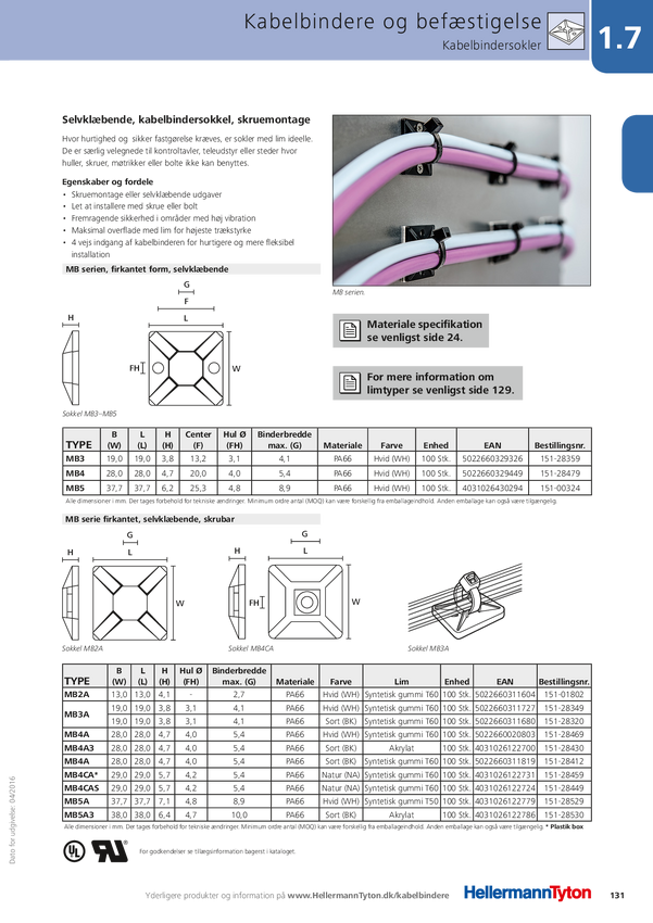 Gniazdo montażowe do opasek kablowych HellermannTyton MB2-PA66-NA-C1 151-28219 1 szt.