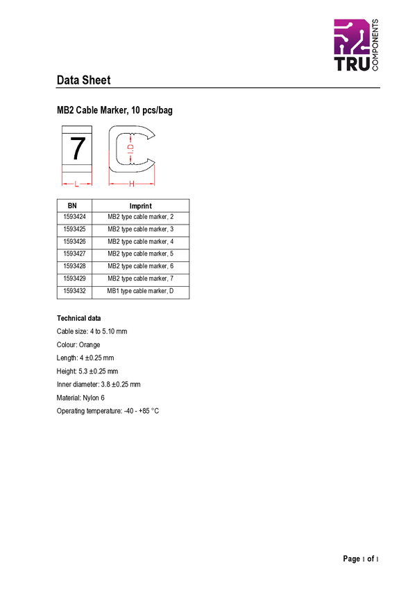 TRU COMPONENTS TC-MB2/2203 Oznacznik kablowy Nadruk 2 Zakres średnicy zewnętrznej 4 do 5.10 mm