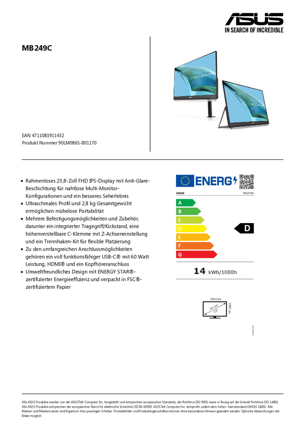 Dis 24 Asus MB249C IPS czarny