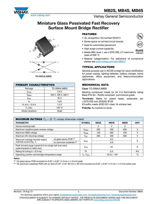 Miniature Glass Passivated Single-Phase Surface-Mount Bridge Rectifier